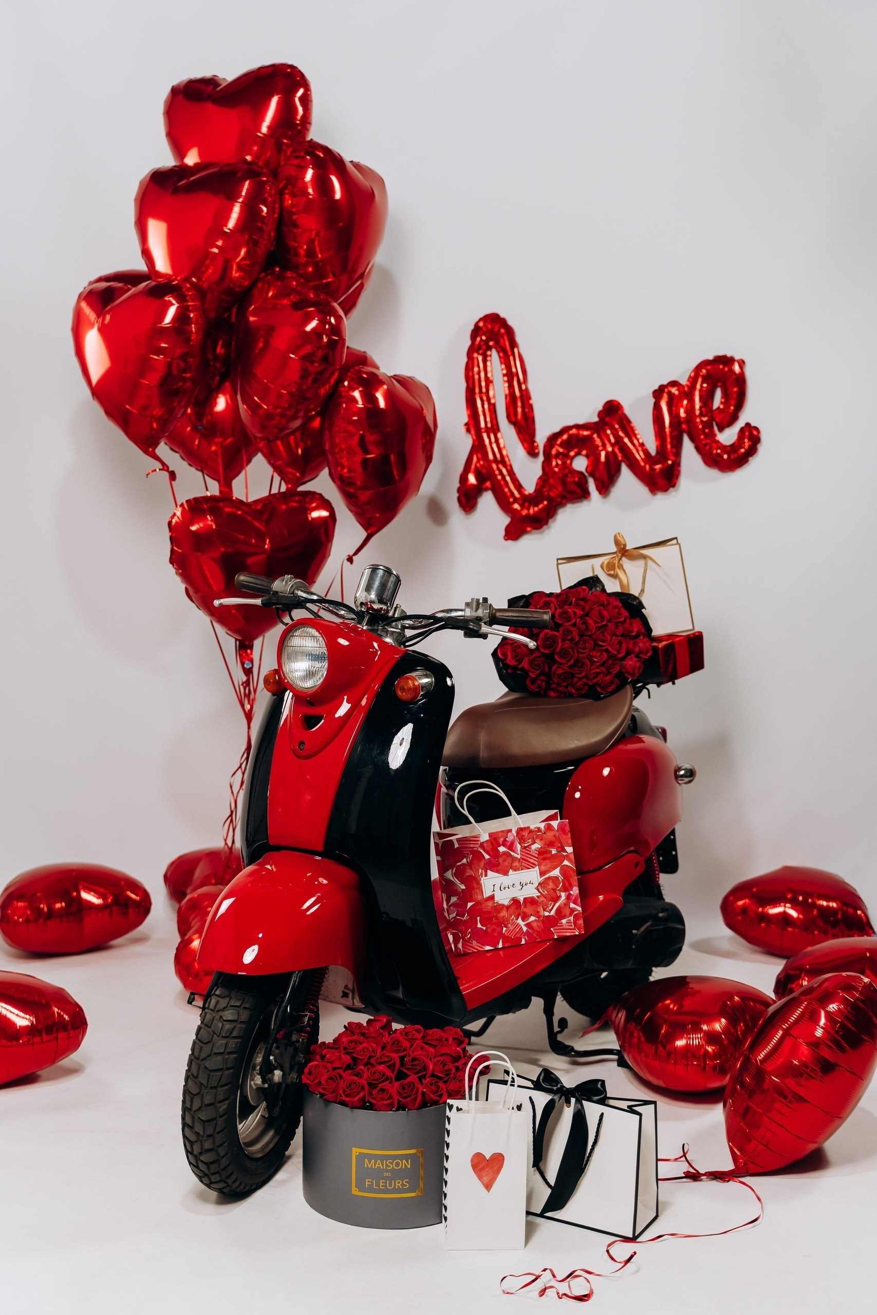 Друзья, эти замечательные фотозоны просто созданы для самых ярких фото! И море роз в чёрной комнате, и красный скутер с сердцами, и романтичная кровать с шариками и «завтраком на двоих») И ещё фотозона для тех, кто наоборот, не жалует День Всех Влюблённых (смотрим последние 2 фото) Демократичная цена за аренду!