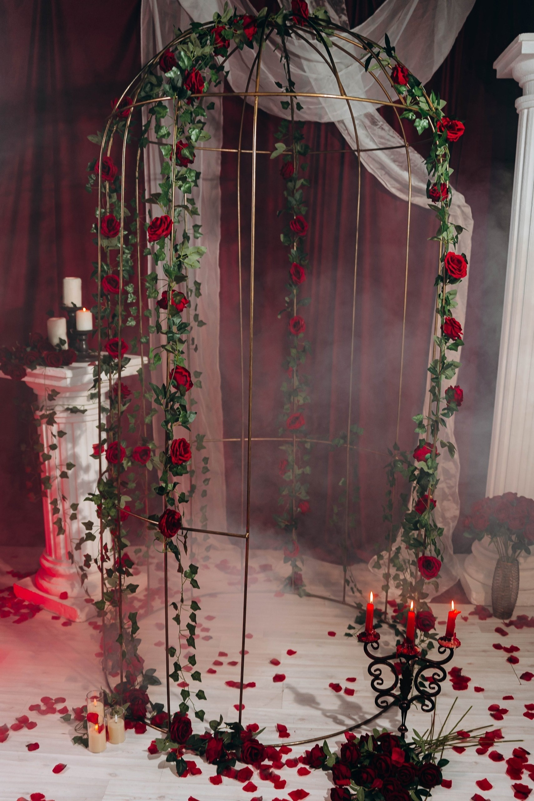 Друзья, рады представить вам новый декор с клеткой! Декор для свободного полета вашей фантазии, а подходящий свет и дым помогут воплотить самые крутые задумки! Клетка может быть использована с розами, как здесь, или без ничего в любой локации как доп. реквизит) Демократичная цена за аренду!