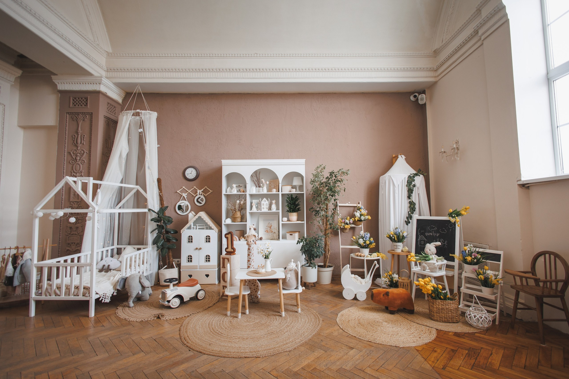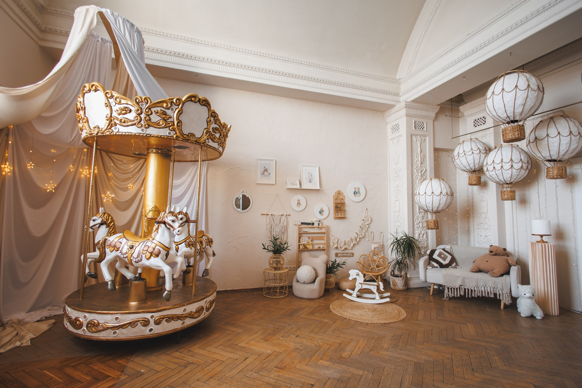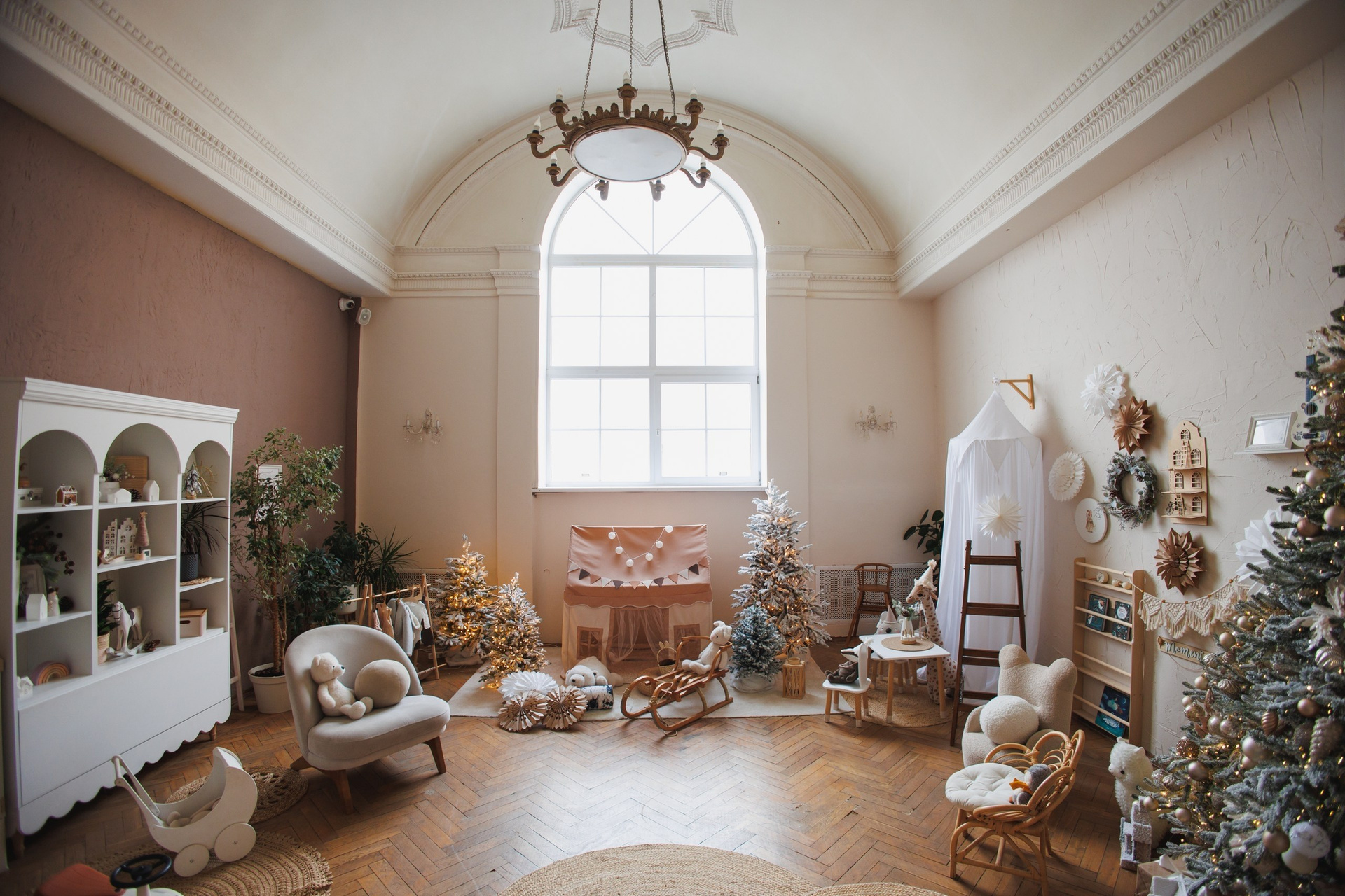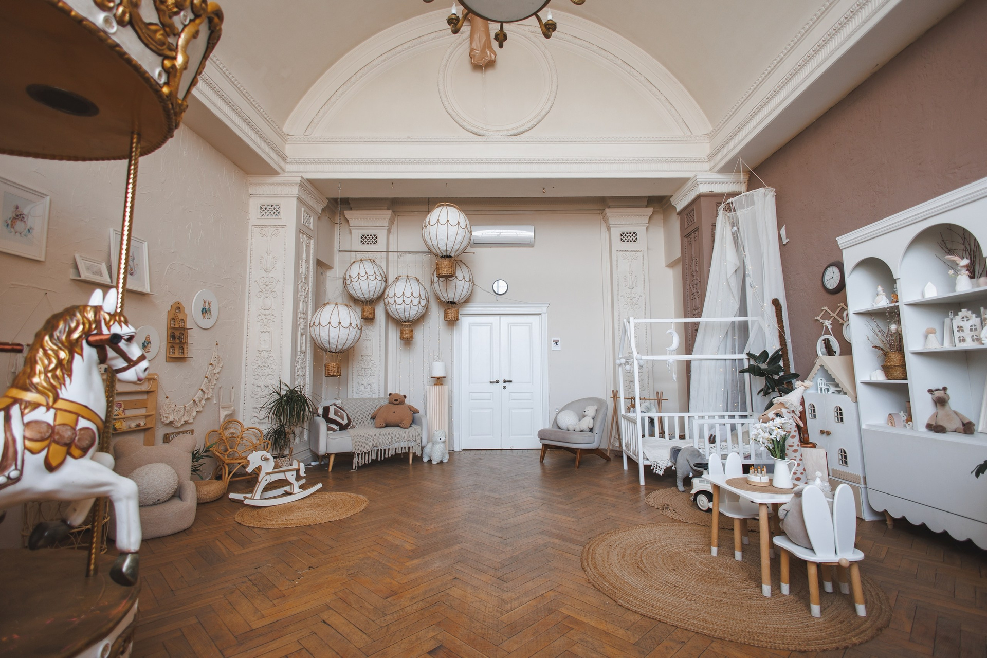 Чудесный зал для семейных и детских фотосессий) Уютно, цвета очень стильные и приятные, множество игрушек и милого декора)